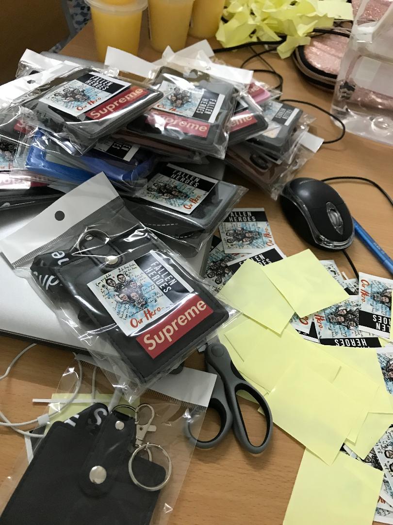 Besides that, we also stamp the sticker that we created for our charity event on souvenirs that we bought.